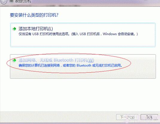2、然后需要选择添加网络、无线或Bluetooth打印机,点击下一步。